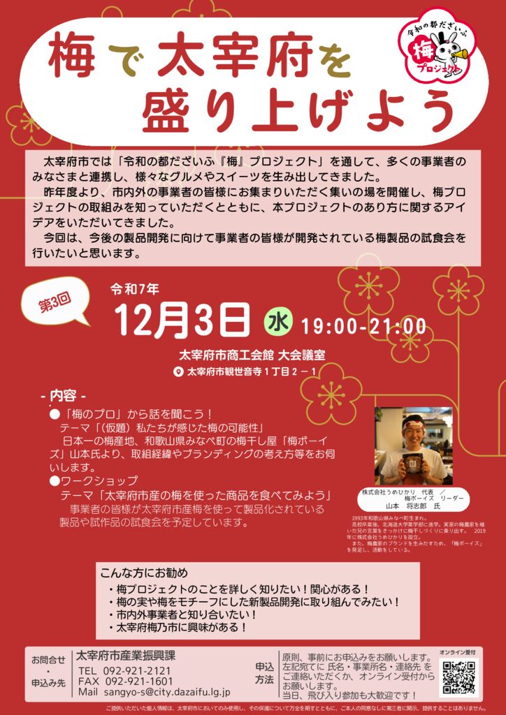 第3回梅で太宰府を盛り上げよう「梅プロジェクト」試食会のご案内